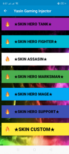 - There are so many skins that you can unlock by using the Yasin gaming injector apk. It makes your game more interesting.